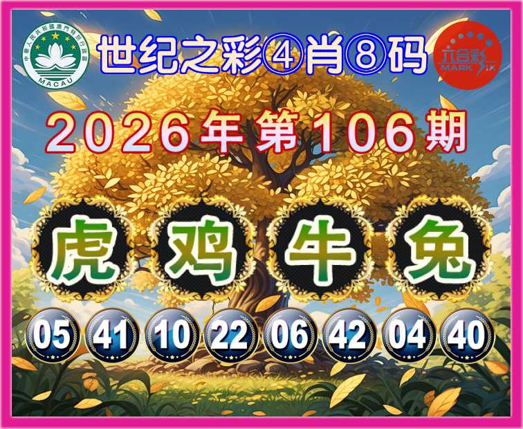 106期:〖世纪之彩〗 👩‍🌾④肖⑧码👩‍🌾【虎牛兔】开:鸡22
