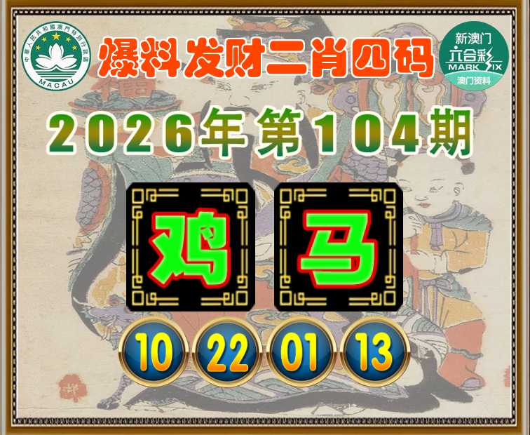 104期:【爆料发财】 🍙二肖四码🍙【鸡】【10.22.01.13】开:马01